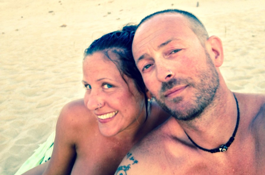 The beach at Montalivet is awesome and perfect for a BBQ. Seeing as nobody was really around and I’d pissed off lolly with my shit fit at the water slides I figured the best thing I could do was get naked on the beach with my wife and go for a naked swim, here we are below after the swim, butt naked!