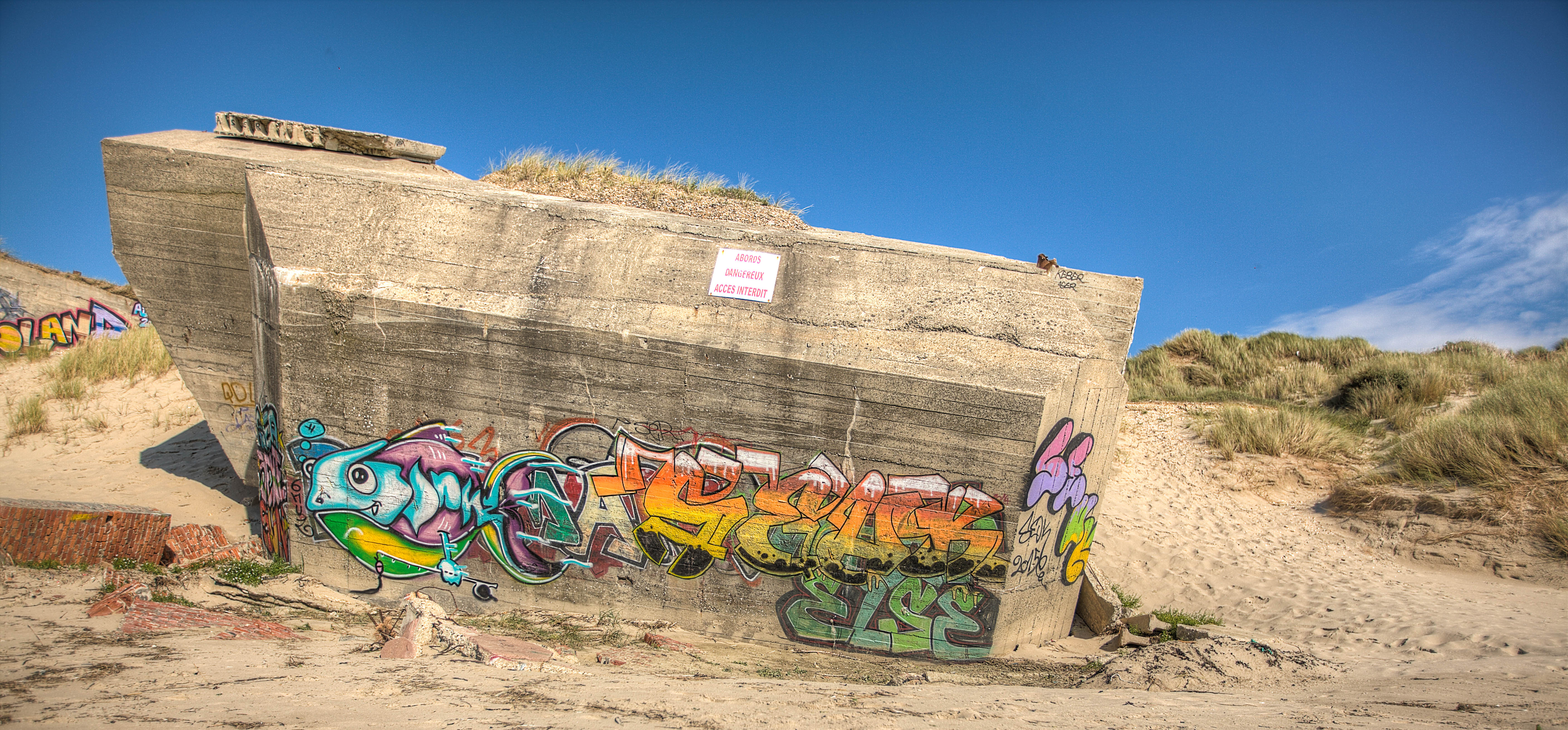We spent a good bit of time walking among the remains of the bunker and photographing the various structures and their artwork.
