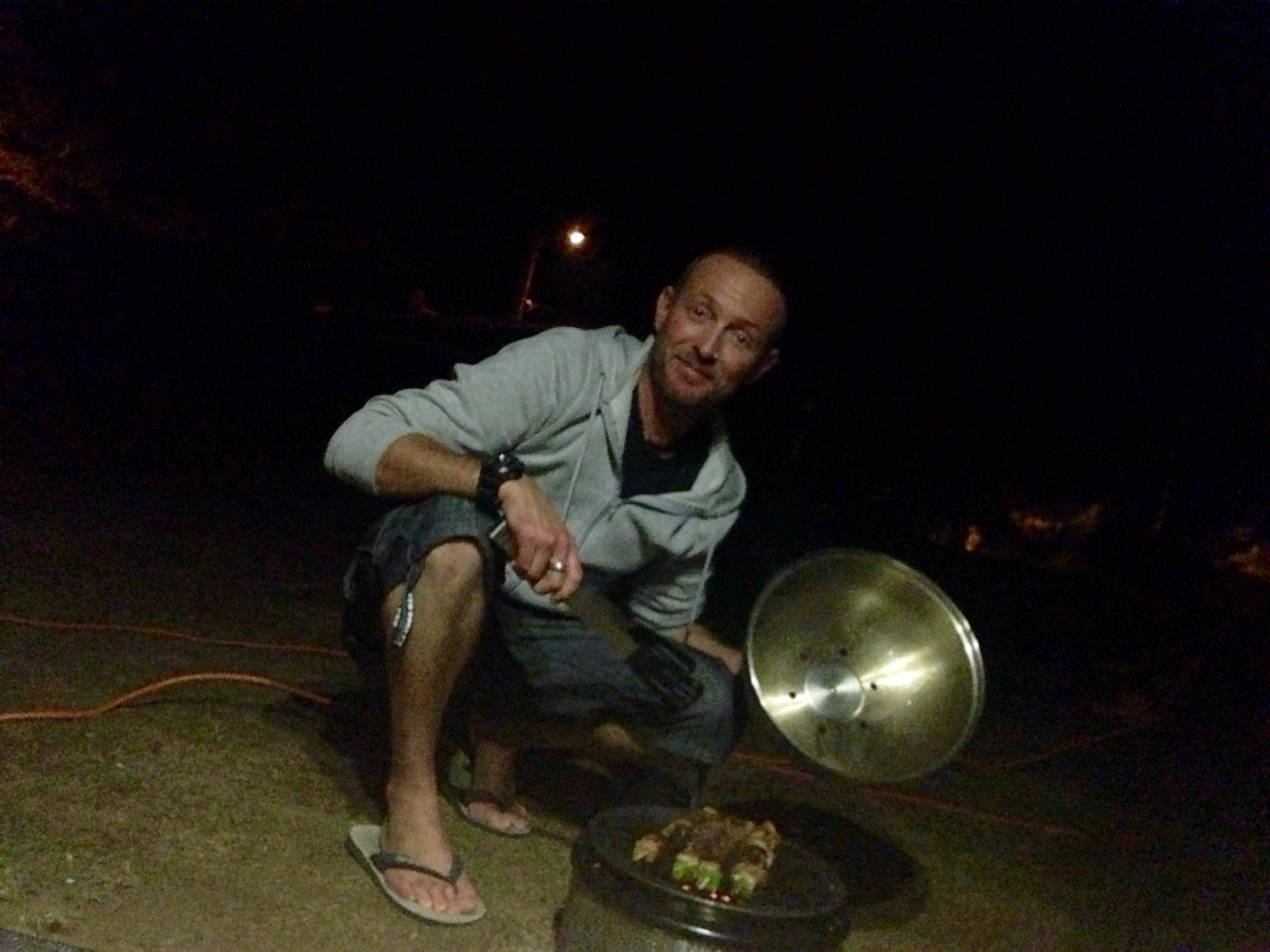 It was dark when we arrived and after a massive drive I demanded a BBQ so that’s what we did, unfortunately all the things we bought were rank including kebabs that had added slices of fat between peppers and the meat.