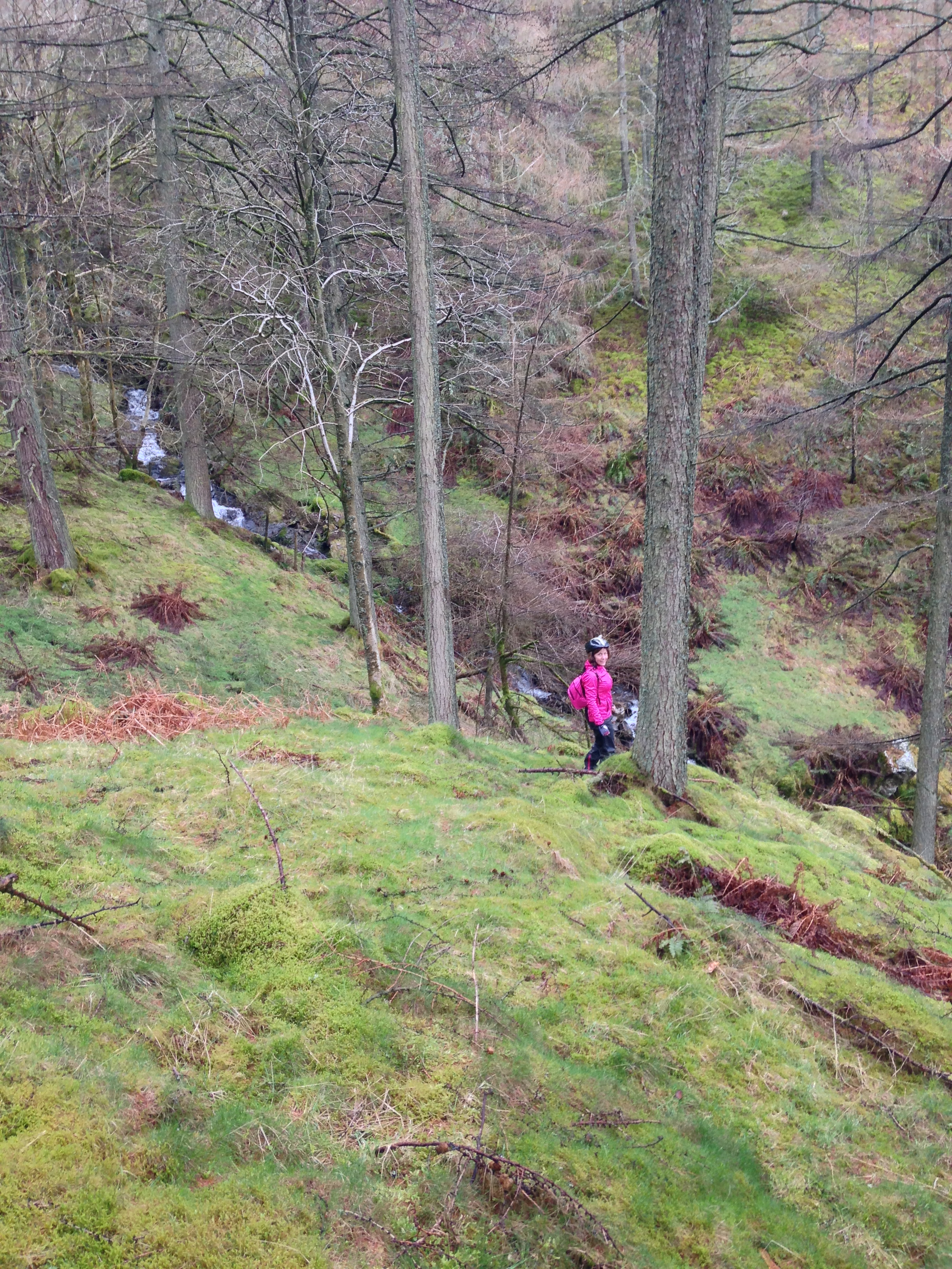 The weather wasn’t the best, it was drizzling / raining for pretty much most of the walk, on the way up to Aria force we regularly encounter fell runners braving the weather in shorts and running shoes that must have been soaked through, it’s also the first place we came across the harvesting of pine trees. These trees are no small things and require some proper machinery to cut them down and transport them away so, dotted along the walk areas that once were full of pines were now full of stumps and tractors, was a bit of shame really as it was probably a lovely path through a pine forest that’s become a path through an area that resembled a nuclear bomb going off.