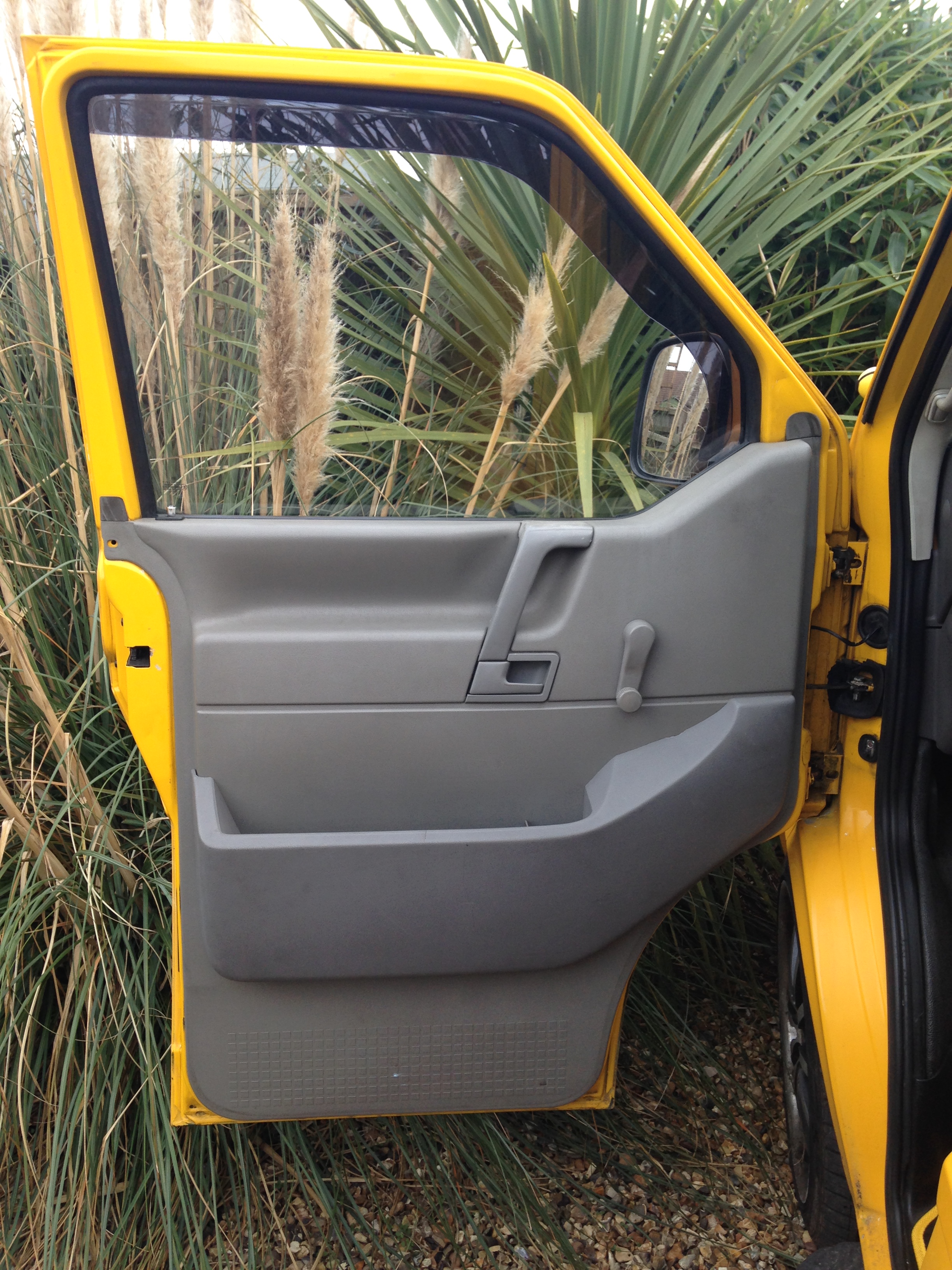 Most T4 conversions started off life as some kind of builders / delivery type van and as such the seating configuration in the cab is a drivers seat and 2 person bench seat.