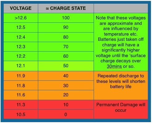 Below is a chart that gives you an idea of what different voltages mean in relation to the condition of the battery, was an eye opener for me!