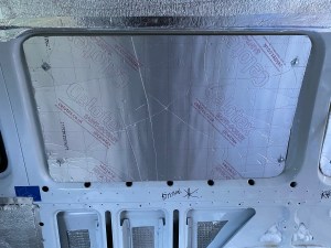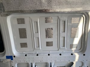 Before putting any insulation up I went round and added sound deadening mats to all the panels, you’d be surprised how much these things change the sound of your panel van..