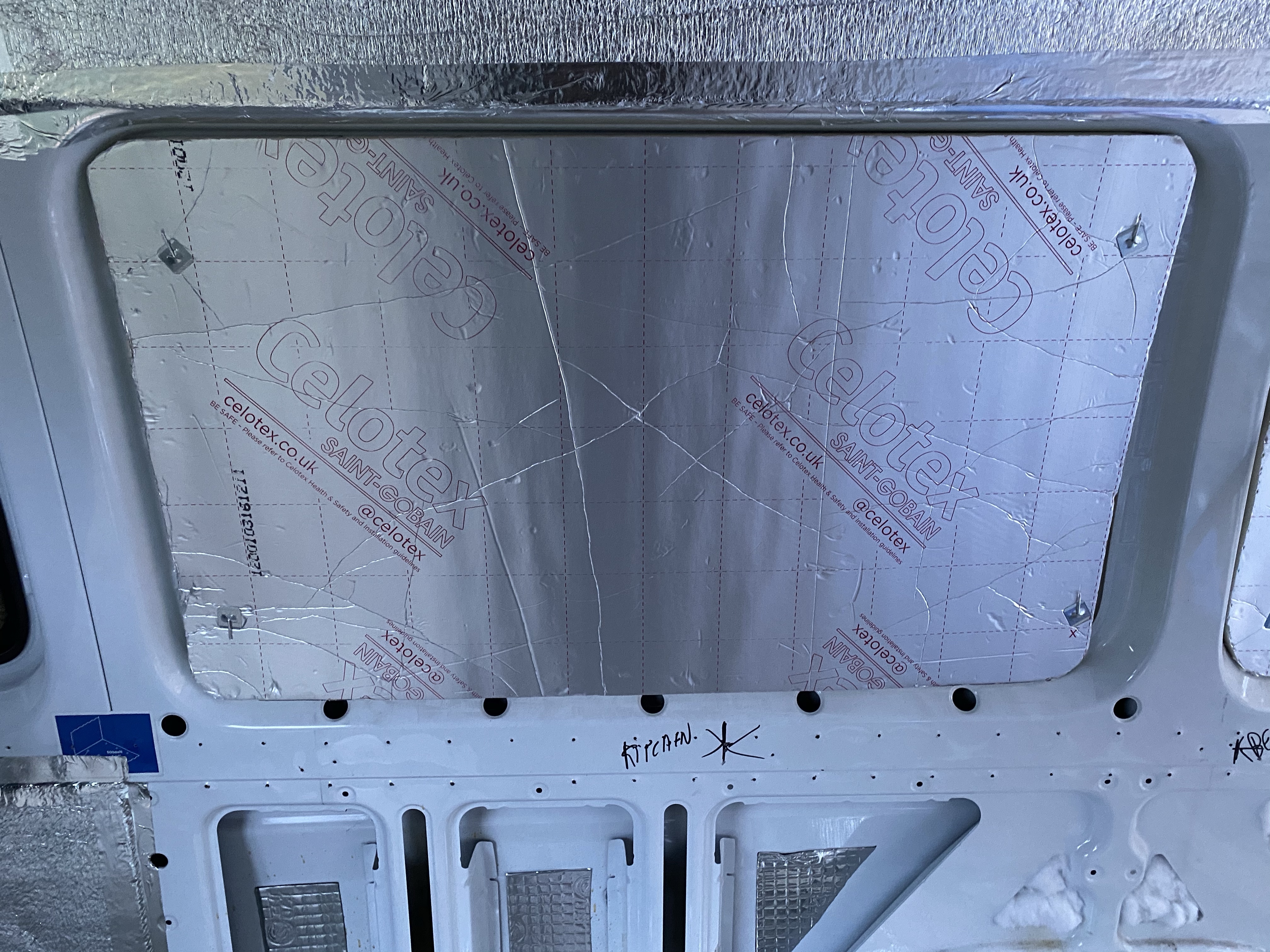 Here you can see panels where I used the Diall soft insulation and Low-E to cover, insulation and a vapour barrier all in one, silver tape is your friend.