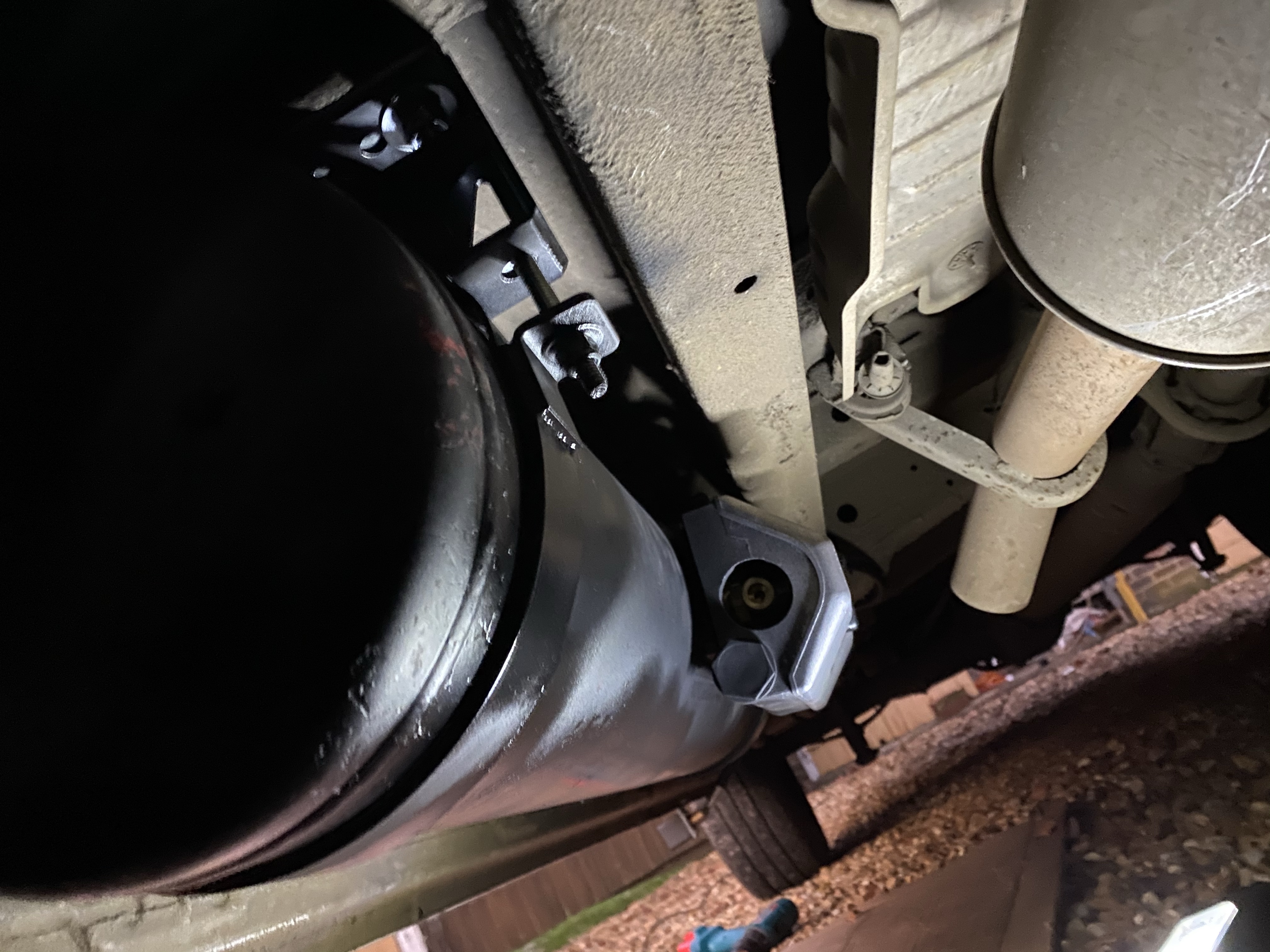 You need a fairly decent sized drill bit to get right through the cross member, off the top of my head I can’t remember the diameter but it needs to be at least 120mm long.