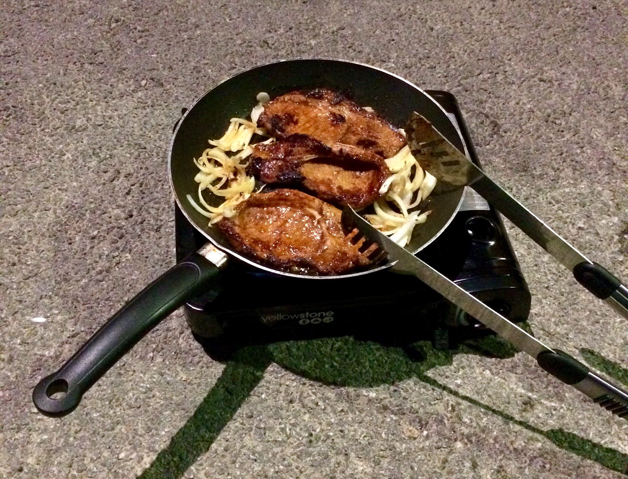 We finished our beers and made our way back to the van to make some food, BBQ pork loins, rice and salad.