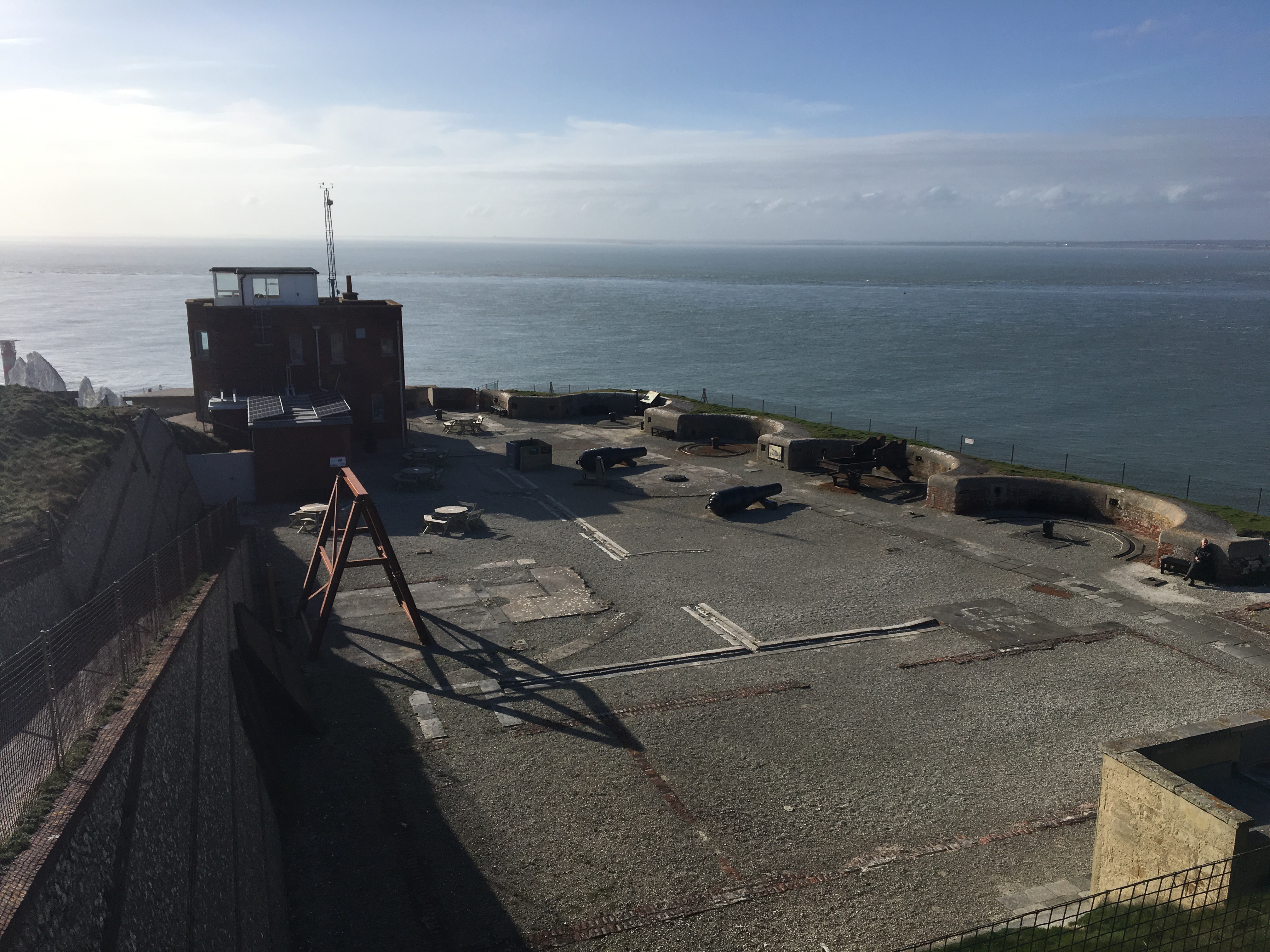 I’d like to add that on several occasions I did suggest we head back down but Lolly was having none of it. In the distance of the picture above you can see The Needles, three bits of rock sticking out of the sea that look like needles with a light house on the end. There is also an old military battery which is free to visit if you are a national trust member, we are so we made our way over.