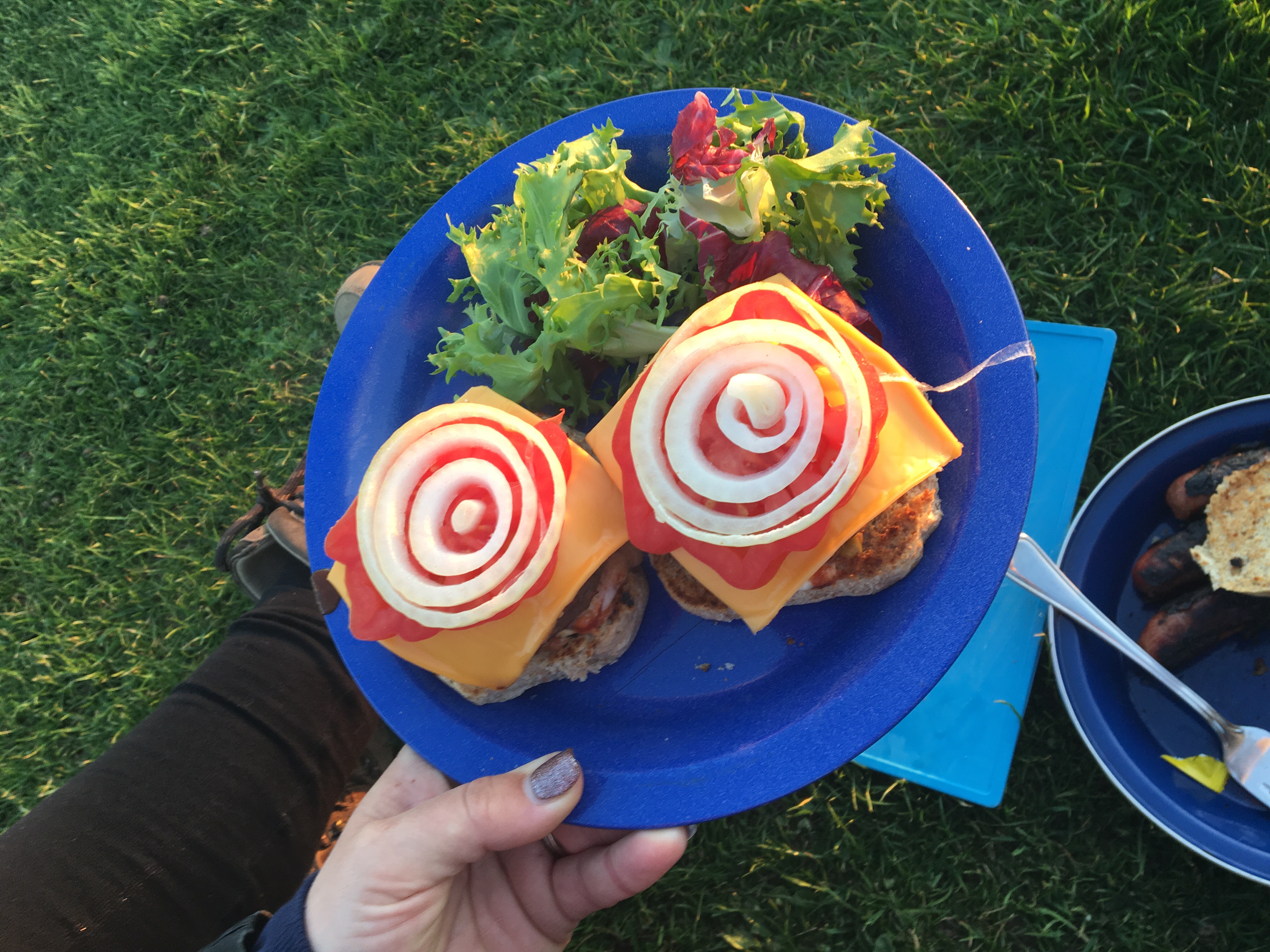 For most of what you cook on the Cobb it’s great that it doesn’t pass any of the fuels flavour to the food, however on this occasion I wish we had brought some charcoal so we could have used used the BBQ grill attachments, although we seasoned the burgers the meat tasted a bit bland, would have been better with a bit of BBQ taste, they looked the part though!