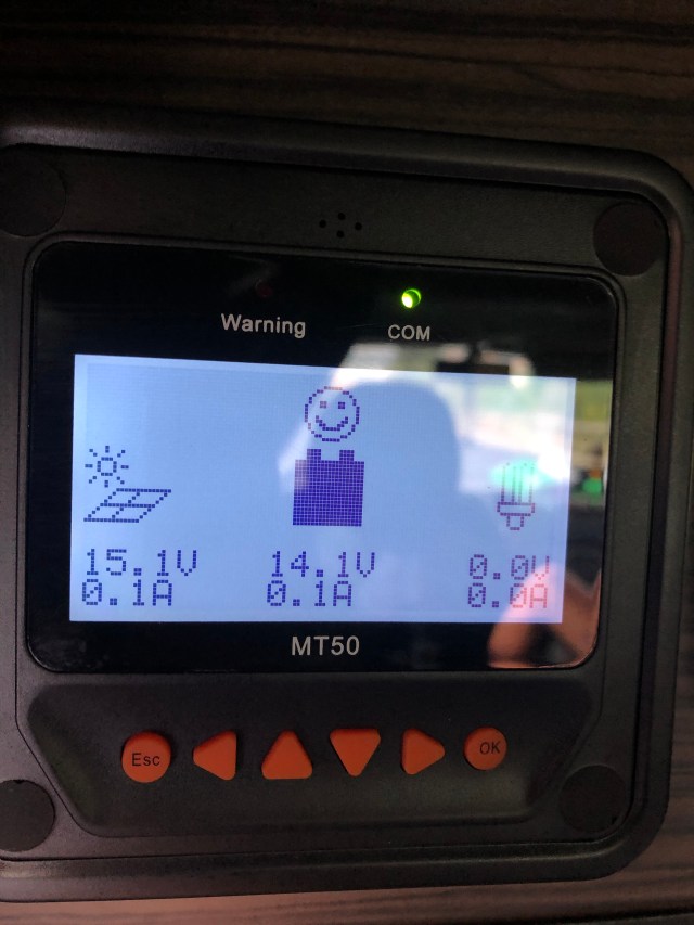 You can see from the picture below I’m getting a voltage that should now charge the battery when the panels are not in direct sunlight.