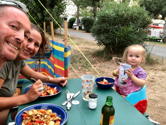 The drive down to Cap D’agde is about 4 hours and we didn’t leave Mont Dore till about 5 so without any stops, we should have arrived at 21.00. Four hours continuously behind the wheel is a bit much for everyone so we did make a couple of stops and arrived around 22.00.